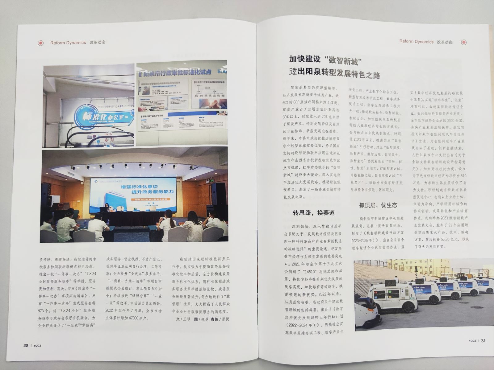 近日,由陽泉市行政審批服務(wù)管理局供稿的《改革動(dòng)態(tài)——打造政務(wù)服務(wù)國(guó)家級(jí)標(biāo)準(zhǔn)化試點(diǎn)》在《陽泉工作》2024年第一期刊登。