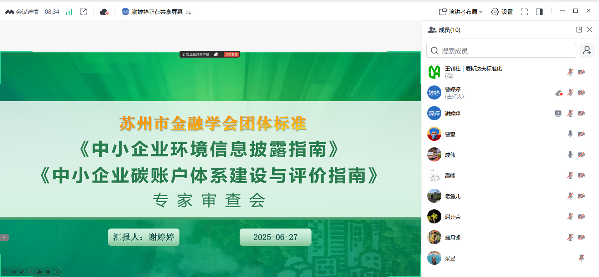 2025年6月27日,蘇州市金融學(xué)會(huì)組織召開由蘇州資產(chǎn)投資管理集團(tuán)有限公司主導(dǎo)編制的《中小企業(yè)環(huán)境信息披露指南》《中小企業(yè)碳賬戶體系建設(shè)與評(píng)價(jià)指南》兩項(xiàng)團(tuán)體標(biāo)準(zhǔn)專家審查會(huì)。來自中國(guó)標(biāo)準(zhǔn)化研究院、蘇州市計(jì)量測(cè)試院、興業(yè)銀行蘇州分行、江蘇銀行蘇州分行、張家港農(nóng)村商業(yè)銀行等單位的七位專家組成標(biāo)準(zhǔn)審查專家組。會(huì)議由蘇州麥斯達(dá)夫標(biāo)準(zhǔn)技術(shù)服務(wù)有限公司總經(jīng)理王釗柱主持。