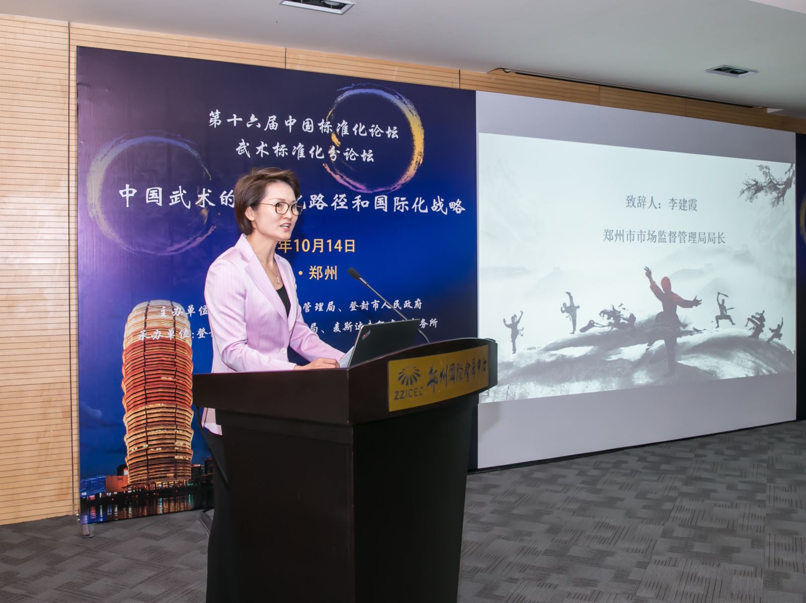 2019年10月14日,由中國(guó)標(biāo)準(zhǔn)化協(xié)會(huì)、鄭州市人民政府主辦,鄭州市市場(chǎng)監(jiān)督管理局承辦的第十六屆中國(guó)標(biāo)準(zhǔn)化論壇在鄭州國(guó)際會(huì)展中心舉行。繼14日上午的論壇開幕式暨主旨報(bào)告之后,武術(shù)標(biāo)準(zhǔn)化分論壇在會(huì)展中心102會(huì)議室拉開帷幕。本次武術(shù)標(biāo)準(zhǔn)化分論壇由鄭州市市場(chǎng)監(jiān)督管理局、登封市人民政府主辦,登封市市場(chǎng)監(jiān)督管理局和麥斯達(dá)夫標(biāo)準(zhǔn)化事務(wù)所承辦。
