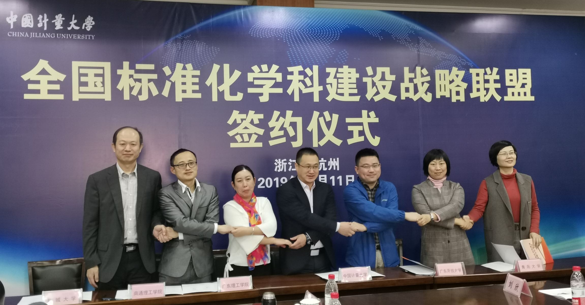 金尚忠致歡迎詞,許建軍、王新亮、張歡分別作講話。開設(shè)標準化工程專業(yè)的中國計量大學、廣東開放大學、廣東理工學院、青島大學、南通理工學院、濟南大學、聊城大學等七所高校共建全國標準化學科建設(shè)戰(zhàn)略聯(lián)盟,并簽署合作協(xié)議。
