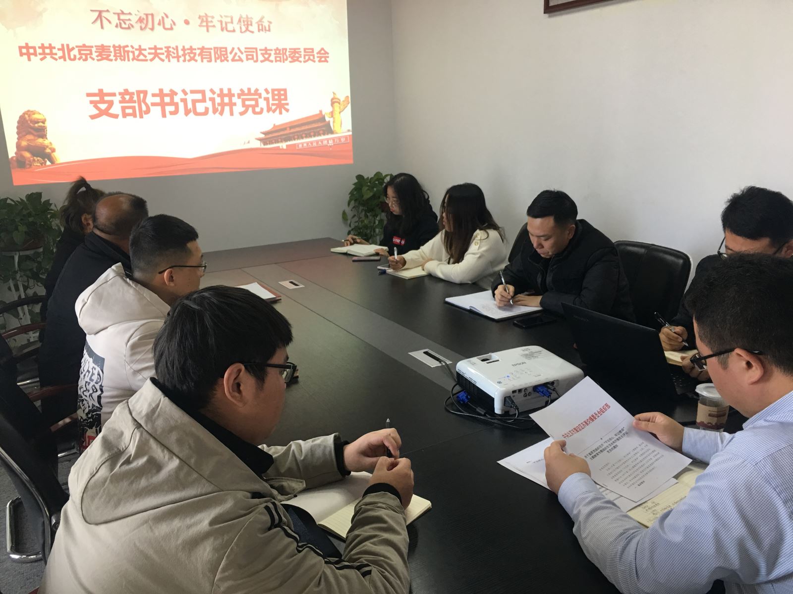 為進一步深化“不忘初心、牢記使命”主題教育,集中傳達學(xué)習(xí)黨的十九屆四中全會精神,2019年12月2日,中共北京麥斯達夫科技有限公司支部委員會組織開展“支部書記講黨課”活動。