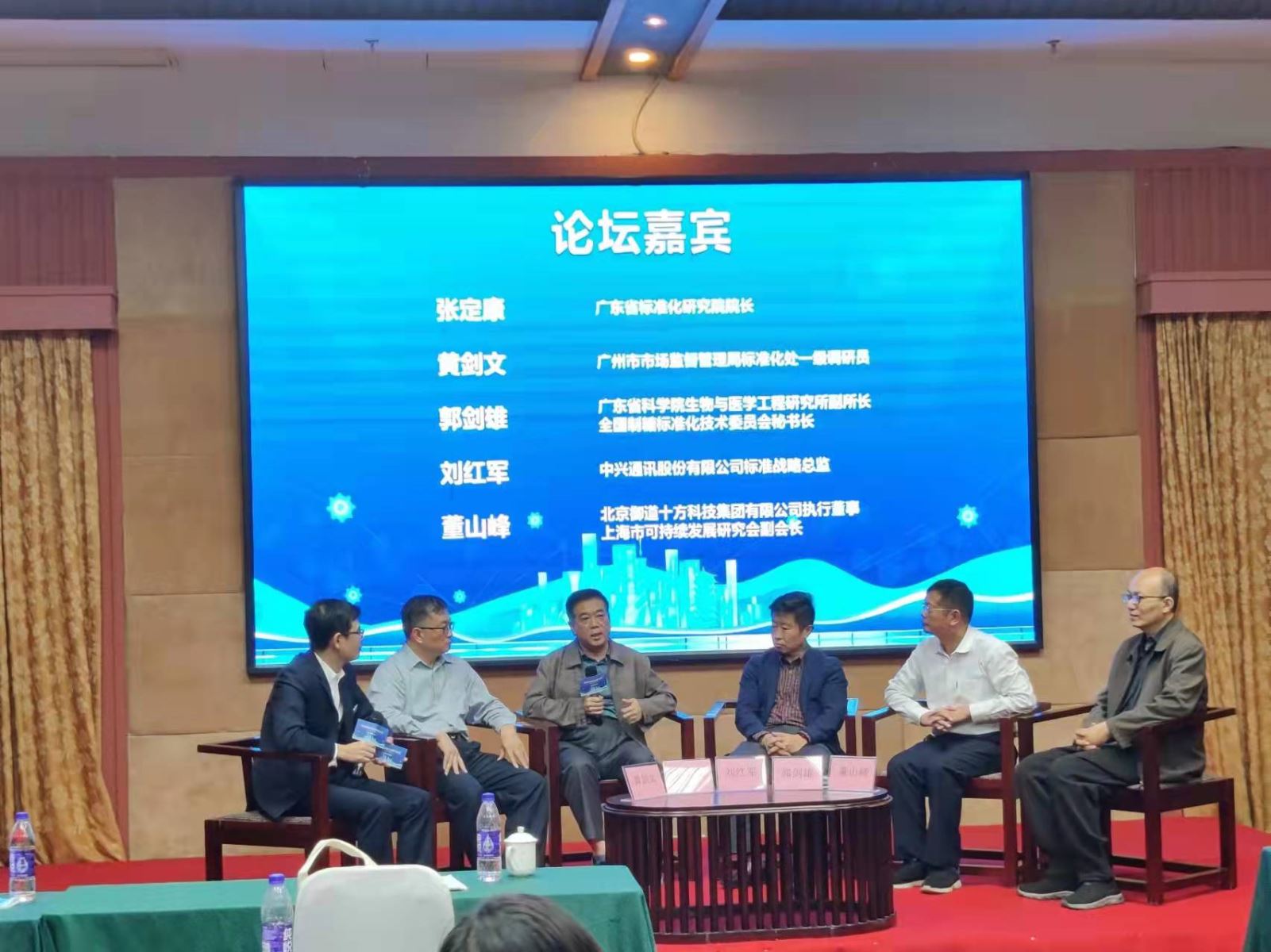 圓桌討論環(huán)節(jié)由廣州市市場監(jiān)督管理局標準化處一級調(diào)研員黃劍文、廣東省標準化研究院院長張定康、廣東省科學院生物與醫(yī)學工程研究所副所長兼全國制糖標準化技術(shù)委員會秘書長郭劍雄、中興通訊股份有限公司標準戰(zhàn)略總監(jiān)劉紅軍及北京御道十方科技集團有限公司執(zhí)行董事董山峰圍繞政策、城市可持續(xù)發(fā)展、企業(yè)創(chuàng)新、灣區(qū)標準等維度,開展標準化生態(tài)討論。