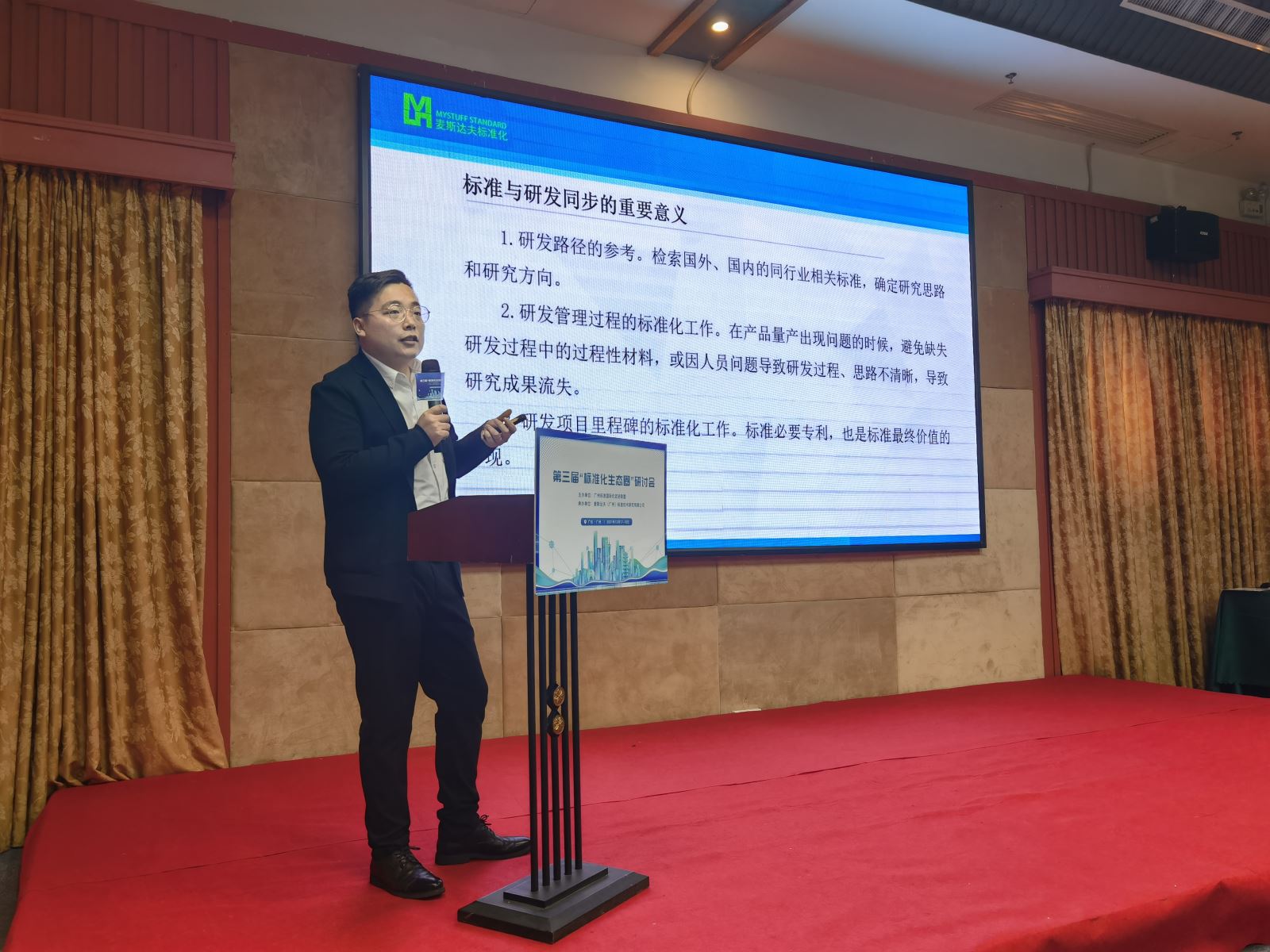 麥斯達夫市場總監(jiān)王釗柱介紹了“標準與研發(fā)同步”。