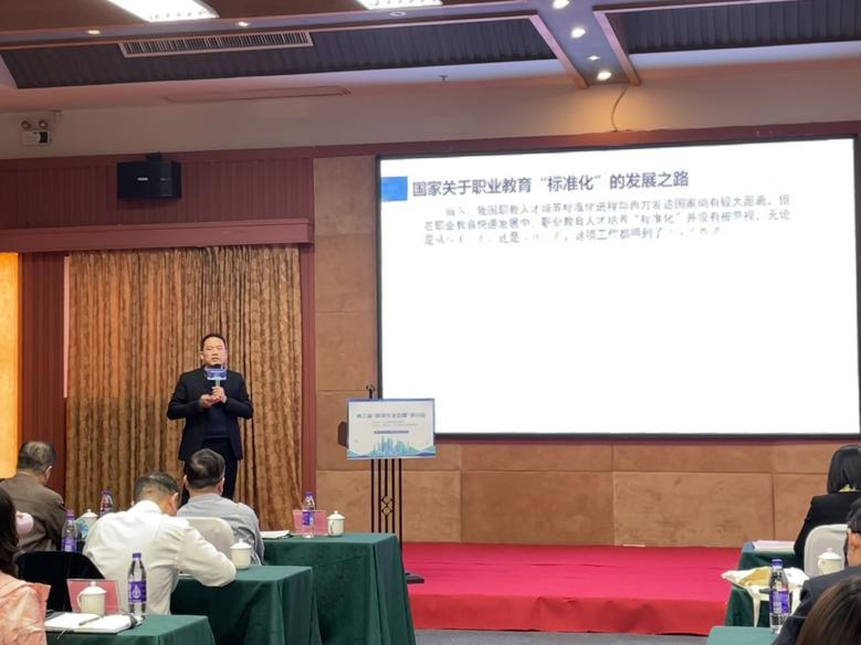 北京御道十方科技集團有限公司的執(zhí)行董事董山峰作《多層次的國際標準人才培養(yǎng)》的主題演講。