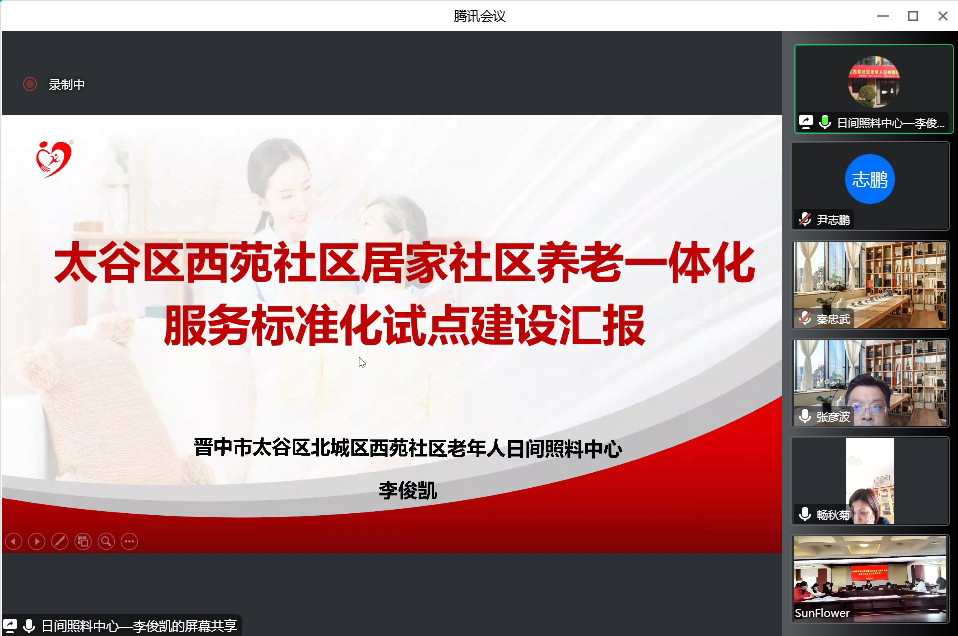 麥斯達夫標準化作為太谷區(qū)西苑社區(qū)居家社區(qū)養(yǎng)老一體化服務標準化試點的技術支撐機構,全流程輔導了試點創(chuàng)建工作,項目經(jīng)理侯曉婷參加會議。