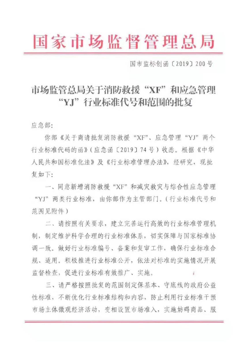 新增行標丨消防救援“XF”和應(yīng)急管理“YJ”