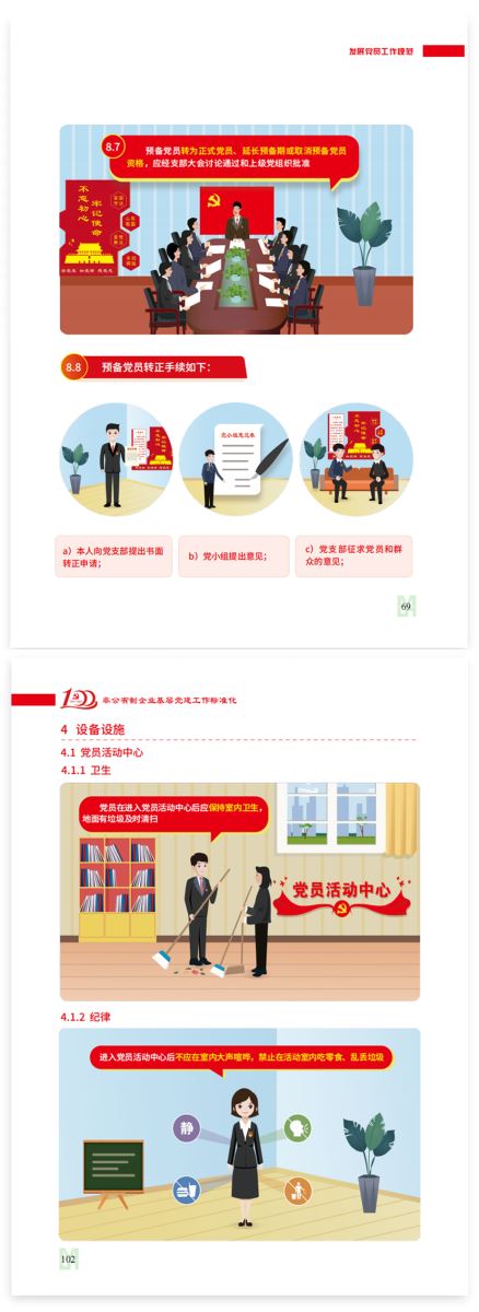 本書堅(jiān)持以中國特色社會(huì)主義理論體系為指導(dǎo),貫徹落實(shí)習(xí)近平總書記系列重要講話精神和治國理政新理念新思想新戰(zhàn)略,依據(jù)《中國共產(chǎn)黨章程》《中國共產(chǎn)黨支部工作條例(試行)》《關(guān)于加強(qiáng)和改進(jìn)非公有制企業(yè)黨的建設(shè)工作的意見》等黨內(nèi)法規(guī)和文件,以標(biāo)準(zhǔn)化專業(yè)視角,本著針對(duì)性高、實(shí)操性強(qiáng)、簡明易懂的原則,全書以“標(biāo)準(zhǔn)圖解版”的形式呈現(xiàn),一共繪制了270張圖片,每一個(gè)場景、每一個(gè)細(xì)小元素均由設(shè)計(jì)師精心繪制,相信本書能成為非公企業(yè)開展黨建工作的普及性讀本和實(shí)用工具書。