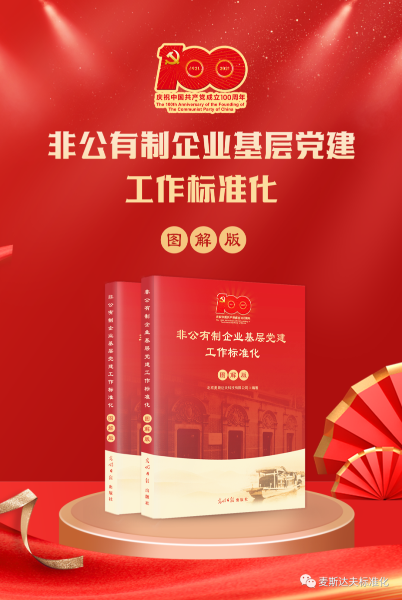 為慶祝中國共產(chǎn)黨百年華誕,中共北京麥斯達(dá)夫科技有限公司支部委員會(huì)、麥斯達(dá)夫標(biāo)準(zhǔn)化事務(wù)所組織編撰了《非公企業(yè)基層黨建工作標(biāo)準(zhǔn)化》一書,作為全國各地推進(jìn)非公企業(yè)黨建工作的參考讀物,供非公企業(yè)黨建工作實(shí)踐者和研究者、非公企業(yè)黨組織和黨員干部參閱。