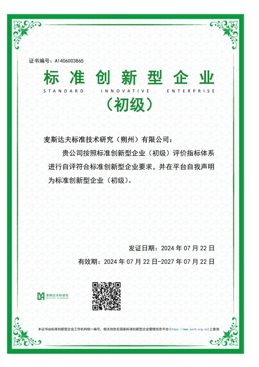 麥斯達(dá)夫標(biāo)準(zhǔn)技術(shù)研究(朔州)有限公司獲評(píng)標(biāo)準(zhǔn)創(chuàng)新型企業(yè)