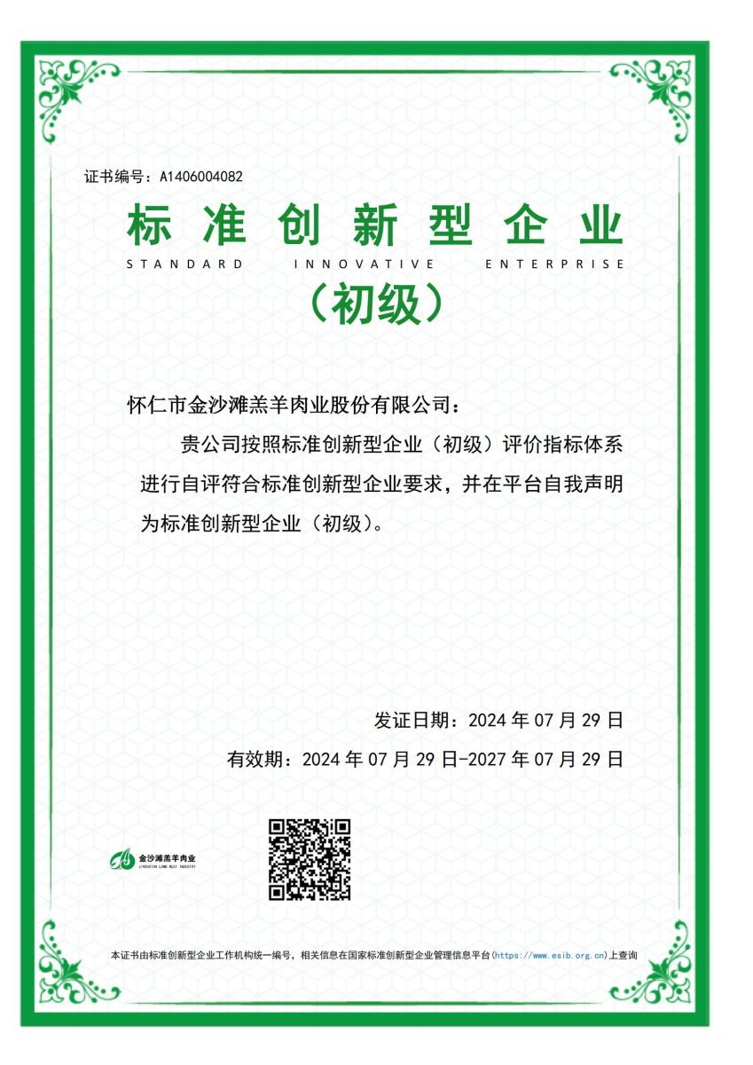 懷仁市金沙灘羔羊肉業(yè)股份有限公司獲評(píng)標(biāo)準(zhǔn)創(chuàng)新型企業(yè)